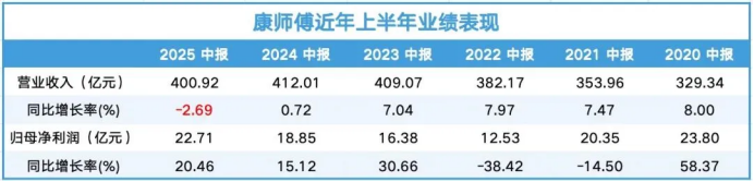 2025年8月,康师傅控股交出了一份令市场哗然的中期成绩单——集团收入400.92亿元,同比下降2.7%,其中饮品业务收入263.59亿元,同比下滑2.6%,较2024年同期锐减7.06亿元。这一下滑的直接诱因令人难以置信:仅仅是1L装冰红茶、绿茶等产品终端价从4元涨至4.5-5元的微小调整。