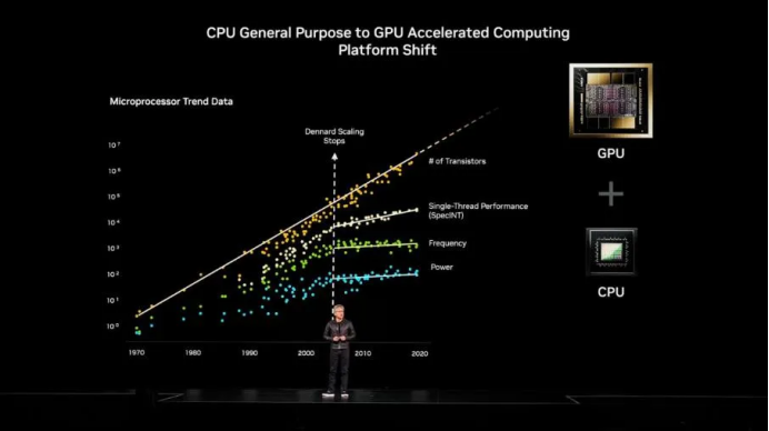 面对这一挑战,英伟达提出的解决方案是:并行计算、GPU和加速计算架构。“这一转折点已经到来,英伟达已做好准备。”黄仁勋宣称,“通过引入能够充分利用指数级增长晶体管的处理器,运用并行计算技术,再与顺序处理的CPU协同工作,我们就能将计算能力推向一个全新维度。”