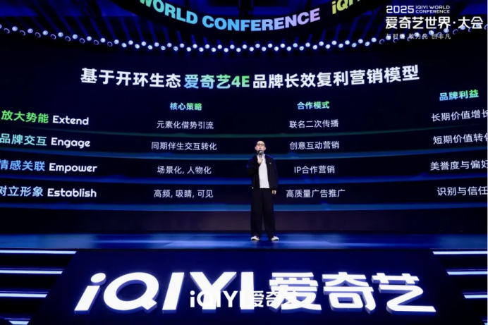 为充分发挥这一内容生态商业动能,爱奇艺推出了“4E品牌长效复利营销模型”,以“树立形象(Establish)、情感关联(Empower)、品牌交互(Engage)、放大势能(Extend)”为全链路营销路径,打破传统硬广仅依赖低价曝光获取认知的局限,通过优化广告环境、创新展现形式及精准匹配内容场景,最大化硬广对品牌形象的赋能,并驱动剧集、综艺等内容营销模式升级,助力品牌长效价值沉淀。