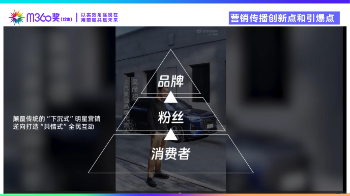 上汽奥迪在面对品牌形象认知模糊的初始困境时,摒弃了传统高空轰炸式的明星代言模式 。品牌通过深度挖掘社交平台“各地吴彦祖”的网感基因,抢占“车界吴彦祖”这一极具全民共情力的标签 。依托从社交话题引爆、定制综艺破圈到垂类媒体拦截、线下全量转化的全景链路,上汽奥迪成功实现了品牌形象的高能焕新,并收获了品牌声量与高意向销售线索的双重爆发式增长 。2. 核心观点提示