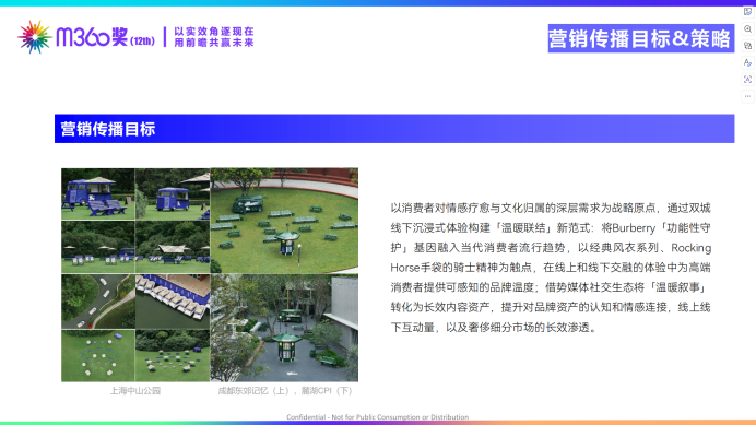 本案例系Burberry与小红书破局性共创的行业首个奢侈品长线营销IP 。品牌敏锐切入“公园20分钟效应”与“City Walk”等高热度社会情绪趋势 ,在上海与成都重构极具松弛感的线下“英伦风尚”沉浸体验 。通过线上线下全域流量的深度交融,Burberry成功将其独有的“温暖与保护”基因转化为大众可感知的疗愈力量 ,不仅实现了声量与互动的双重爆破,更为品牌沉淀了丰厚的社交心智资产,确立了奢侈品社区化营销的新标杆 。2. 核心观点提示