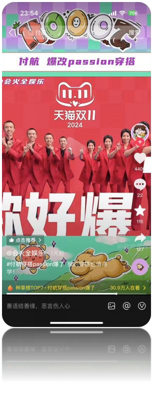2. 声量破圈:通过跨平台联动,实现双11话题的破圈传播,吸引抖音泛娱乐、年轻用户群体关注,扩大大促影响力边界。
