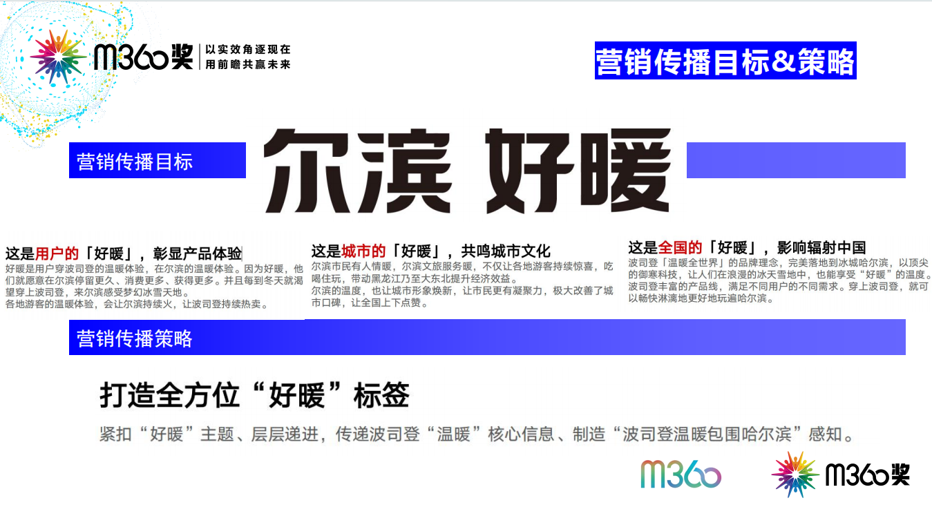 辅助目标: 构建品牌与哈尔滨的深度专属记忆,提升线上全网声量与年轻用户的参与度,拔高波司登在羽绒服高端人群中的时尚与品质调性 。