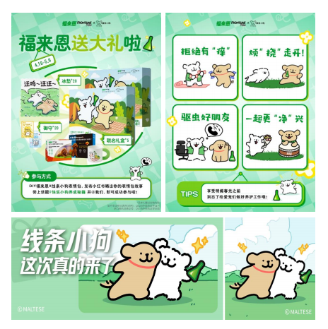 2. IP联名跨界融合难:福来恩作为宠物医药品牌,与潮流萌宠IP线条小狗的品类属性差异大,如何实现IP形象与品牌卖点的自然融合,避免联名生硬。