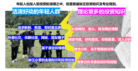 3. 需求匹配难:年轻人理财需求偏向“低门槛、高趣味、即时满足”,而黄金投资强调长期规划与理性分析,如何平衡二者需求,实现有效沟通。