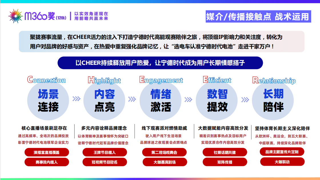 新奖金奖案例《满电出发,宁德时代携手咪咕共赴高能主场》进行深度结构化解构。该案史无前例地以B2B巨头身份下场,借势顶级国际体育赛事实施C端降维打击,不仅重塑了消费者的购车决策逻辑,更为底层供应链企业如何争夺产业话语权提供了教科书级的战略范本。