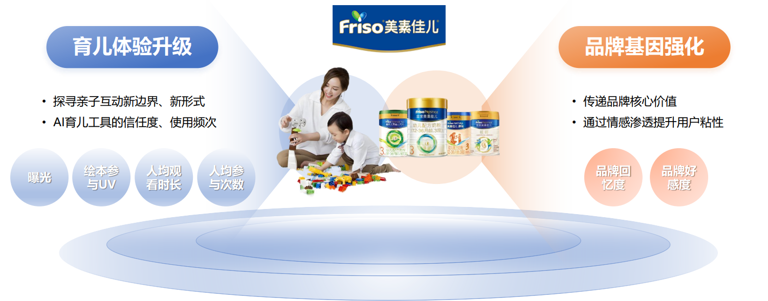 核心成效:实现参与数据与体验效果双超越,触达超 3 亿家庭流量,品牌回忆度与好感度大幅提升,完成超 350 万家庭用户的深度互动,构建起母婴行业首个 AI 育儿互动生态,实现品效协同与行业标杆的双重打造。