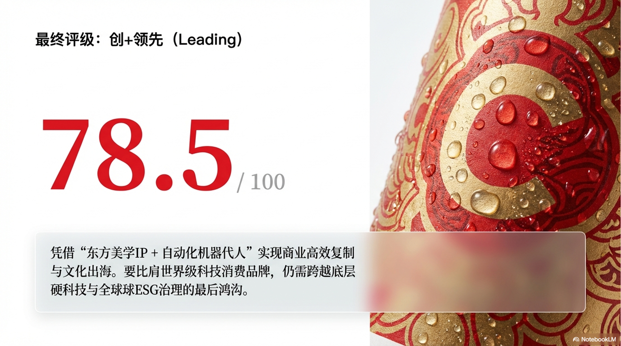 一句话结论: 凭借“东方美学IP + 自动化机器代人”实现商业高效复制与文化出海,但要比肩世界级品牌,必须跨越底层科技原创力与深度全球ESG治理的最后鸿沟。