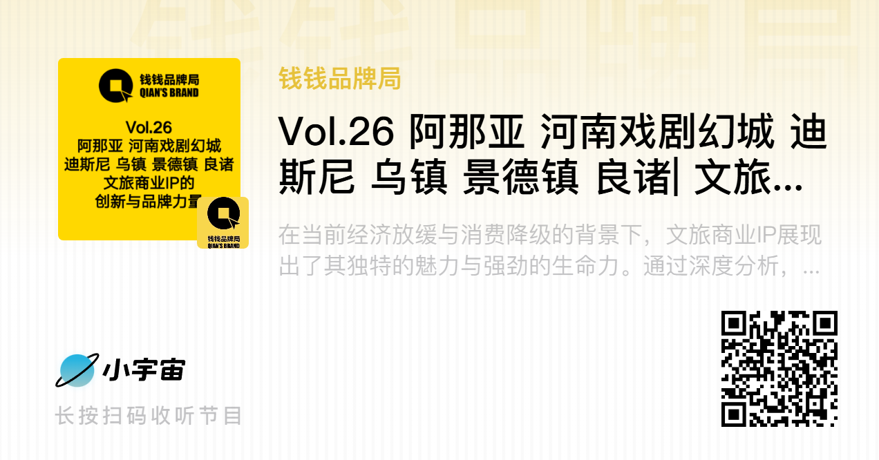 本期《钱钱品牌局》聚焦文旅商业 IP核心赛道,在经济放缓与消费降级的市场背景下,深度探讨文旅商业 IP 如何在品牌打造、文化创新、社会设计等维度实现革新,剖析其成为吸引年轻消费者、提升品牌价值关键因素的底层逻辑,为文旅商业 IP 的长效发展提供专业指引。