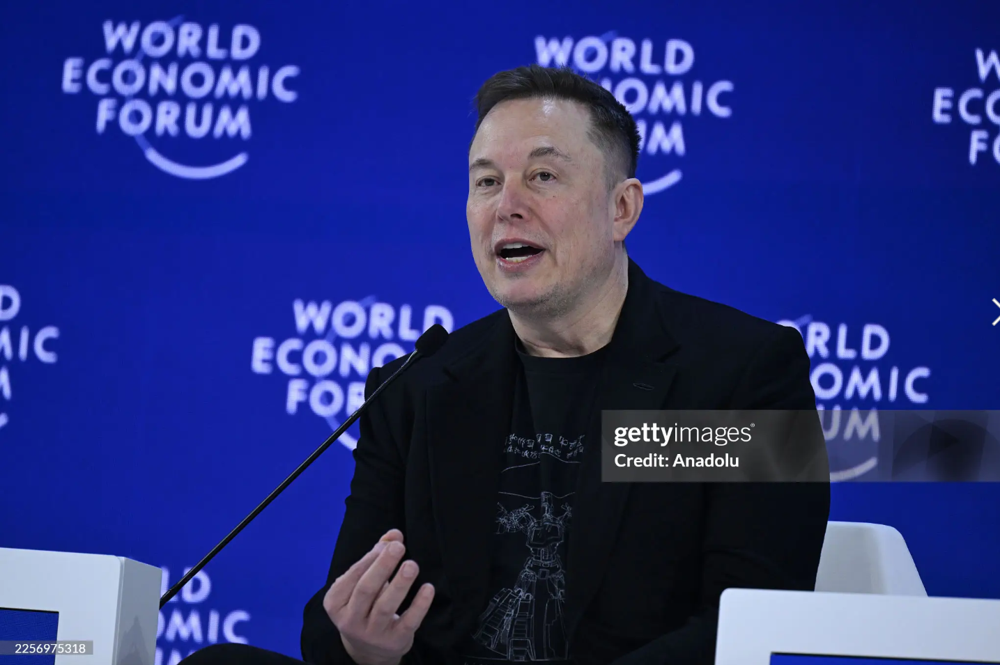 第一场:达沃斯世界经济论坛(1月22日),对话嘉宾是贝莱德CEO拉里·芬克。这是一场约30分钟的台上对谈,有官方文字记录。马斯克第一次出席达沃斯——他曾在2022年拒绝邀请并公开批评这个地方"无聊透顶"。