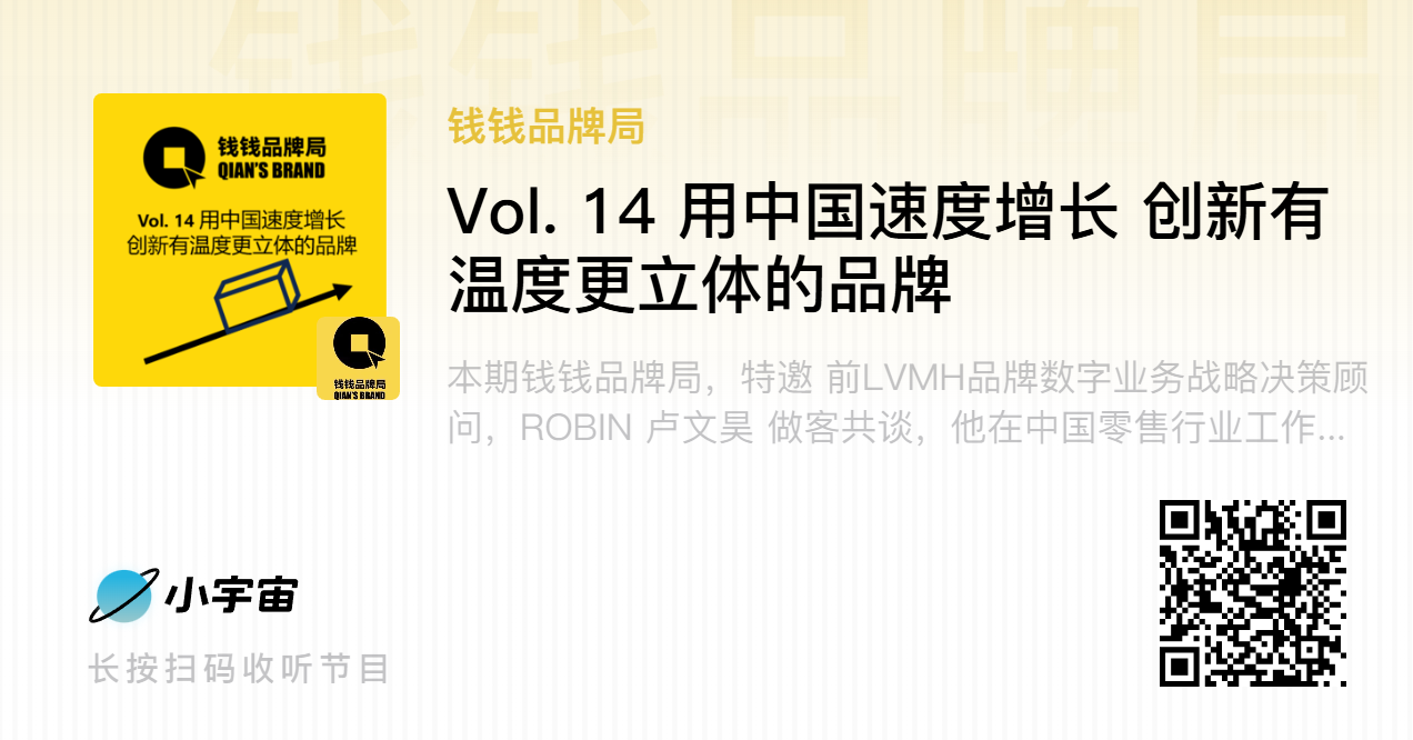 本期【钱钱品牌局】特邀前LVMH品牌数字业务战略决策顾问ROBIN 卢文昊做客分享。卢文昊深耕中国零售行业20余年,从一线生意运作到赋能奢侈品集团,覆盖数字化、战略、渠道、消费者运营、生态搭建等多个维度,曾负责LVMH集团中国区整体数字化搭建,主导集团在中国市场的可持续发展投资与规划,兼具实战经验与战略高度。
