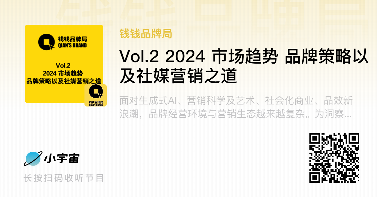面对生成式AI、营销科学与艺术、社会化商业、品效新浪潮的多重冲击,品牌经营环境与营销生态越来越复杂。为洞察新环境下的市场脉动,探寻品牌实效增长解决方案,本期【钱钱品牌局】邀请秒针营销科学院院长谭北平,一同聊透2024年市场趋势、品牌投资策略以及社媒营销之道,为品牌营销增长提供清晰指引。