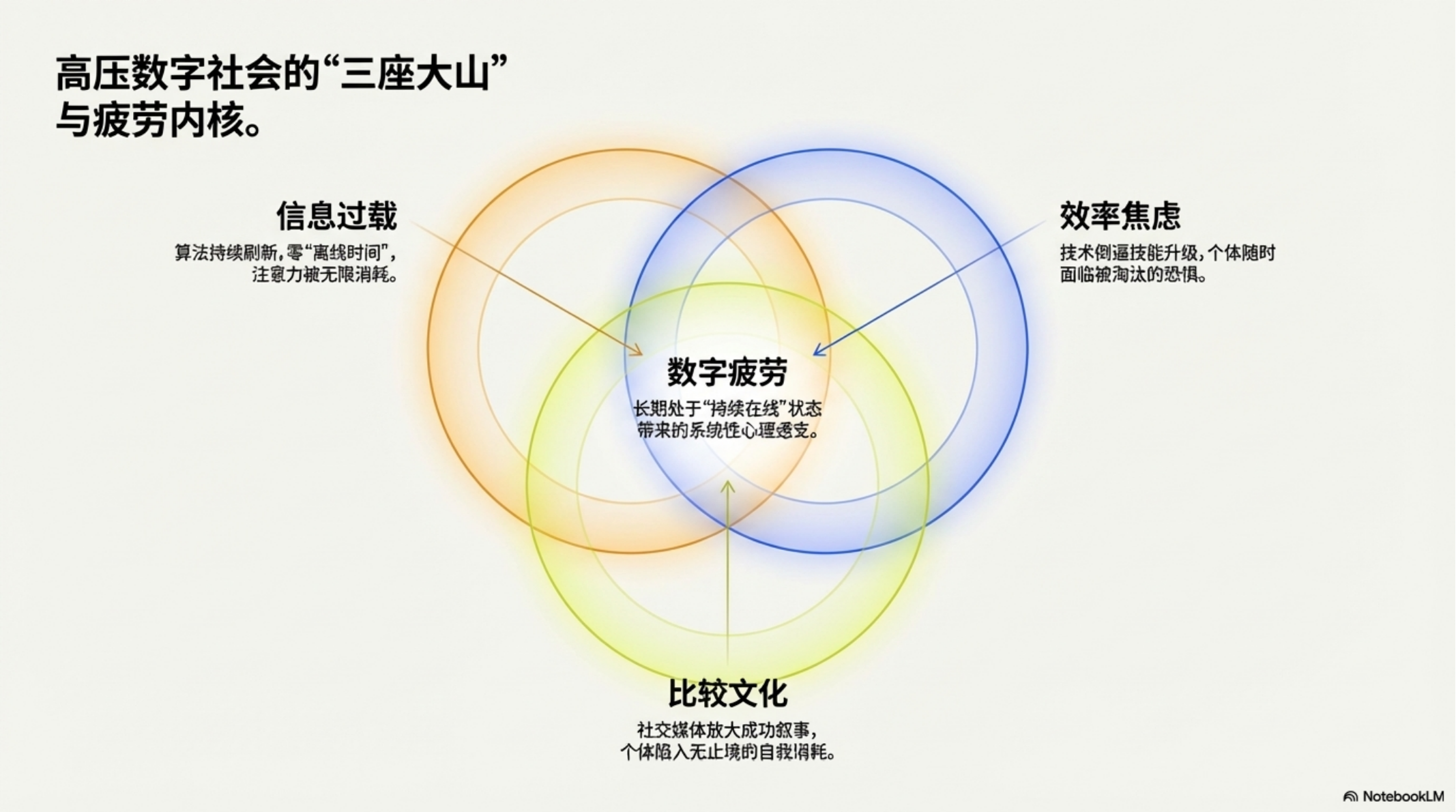 第一是信息过载。短视频平台和信息流不断刷新,用户几乎没有真正的“离线时间”。大量信息在极短时间内