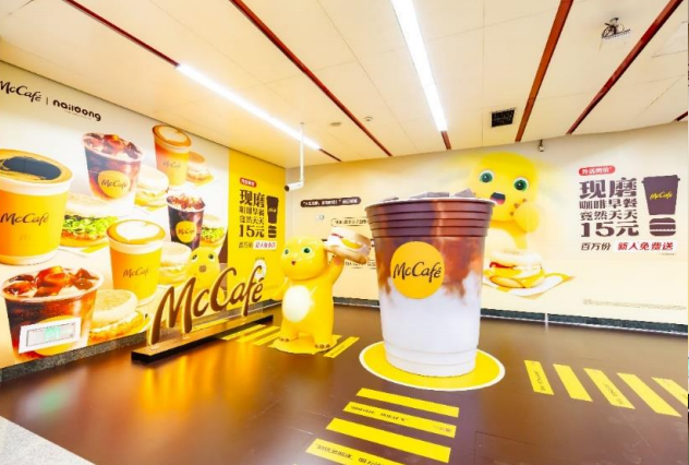 麦咖啡联合奶龙 IP 聚焦北京早 8 人群,以地铁通勤场景为核心户外阵地,打造 “萌趣上班路” 营销活动,通过高性价比早餐套餐、沉浸式异形装置、趣味文案内容的组合打法,精准触达目标受众,最终实现周边门店销量超预期增长,品牌年轻度与认知度显著提升,形成线上线下的自发传播效应。