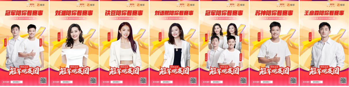 关键动作:打造《冠军观赛团》专属 IP,发起苏炳添 9 秒 83 全民互动挑战,联动明星运动员沉浸式观赛种草,绑定奥运高光时刻输出 “冠军同款,金牌好价” 利益点,打通快手与京东双端消费转化路径。