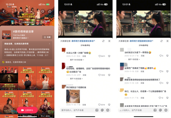 康师傅与《唐诡3》的合作深刻印证当品牌与平台的关系,从短暂的“资源交易”深化为长期的“资产共建”时,一部好剧确实能为品牌注入蓬勃的生命力。