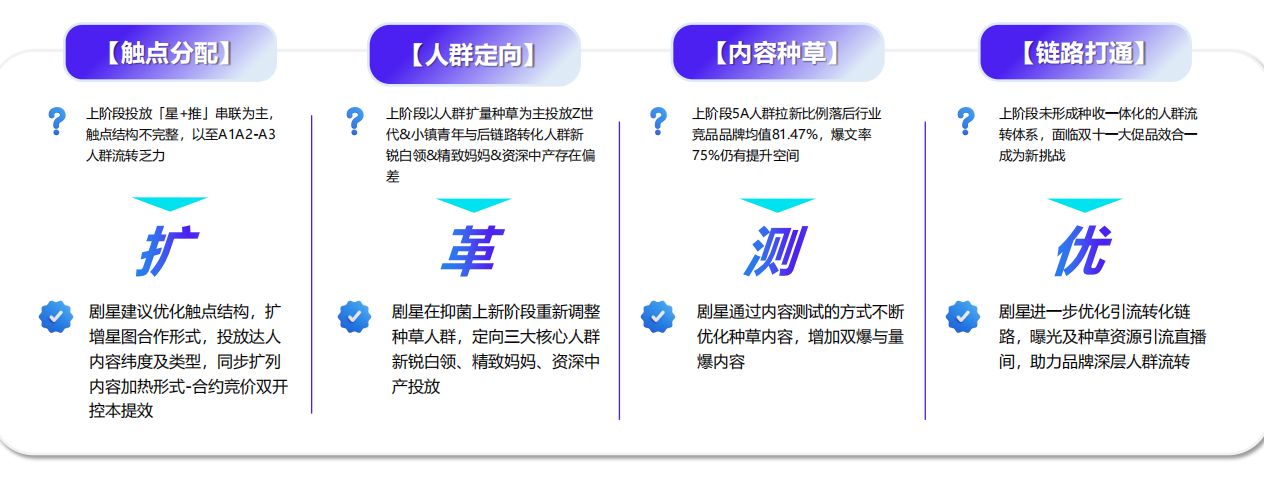链路提效:完善触点结构,打通认知 — 种草 — 搜索 — 转化全链路。