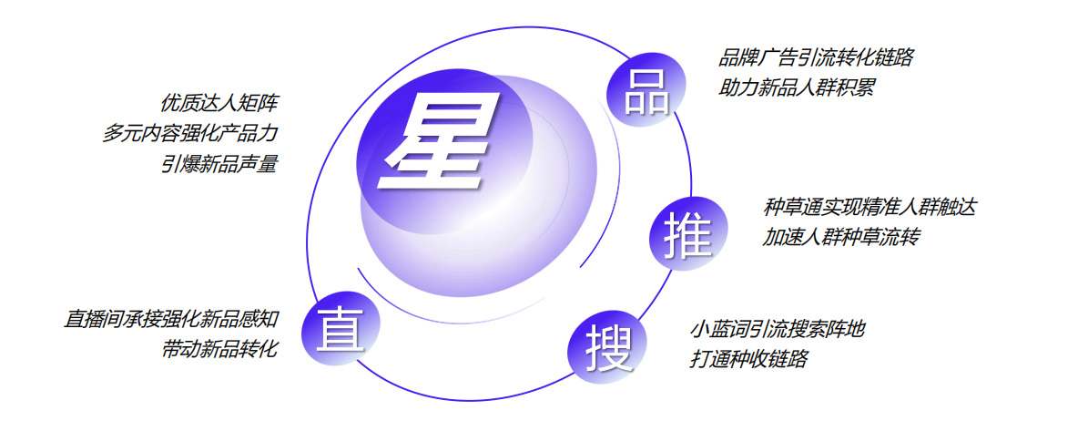 核心策略:以达人(星)为核心引擎,构建 “星 + 品 + 推 + 搜 + 直” 全触点高效流转链路,分阶段匹配新品生命周期,实现精准拉新、深度种草、高效转化。