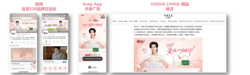 心相印以 520 品牌日为核心契机,面向全年龄段家庭及品质消费人群,围绕 “爱在心相印” 主题展开整合营销,通过 27 城分众梯媒规模化覆盖、代言人线下互动、微博 / Keep/VOGUE 等线上矩阵联动,强化 “100% 原生木浆 = 好纸巾标准” 的品质认知,传递温暖、守护、有爱的品牌价值,最终实现品牌活跃度与购买意愿大幅提升,全渠道增速领跑行业,家庭渗透率再创新高。