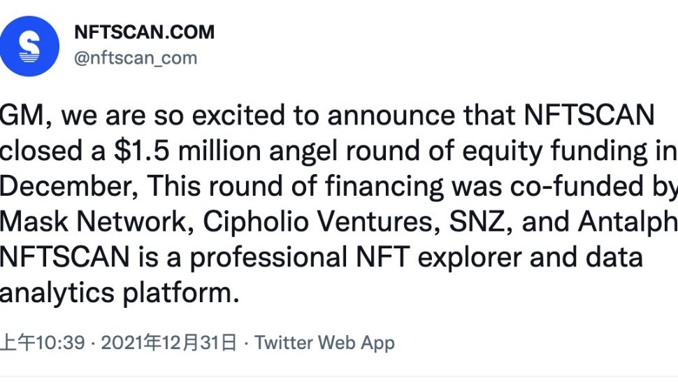 元宇宙|NFT基础设施NFTSCAN完成150万美金天使轮股权融资,Mask Network等参投