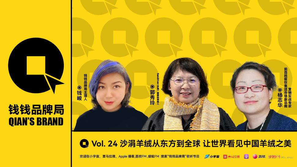 本期【钱钱品牌局】播客,邀请到Sandriver沙涓艺术羊绒 品牌创始人郭秀玲,聆听她对于品牌创立、行业发展以及个人成长的深度见解。她以羊绒为笔,以匠心为墨,在时间的画卷上勾勒出了一幅幅关于美、关于爱、关于传承与创新的图景。