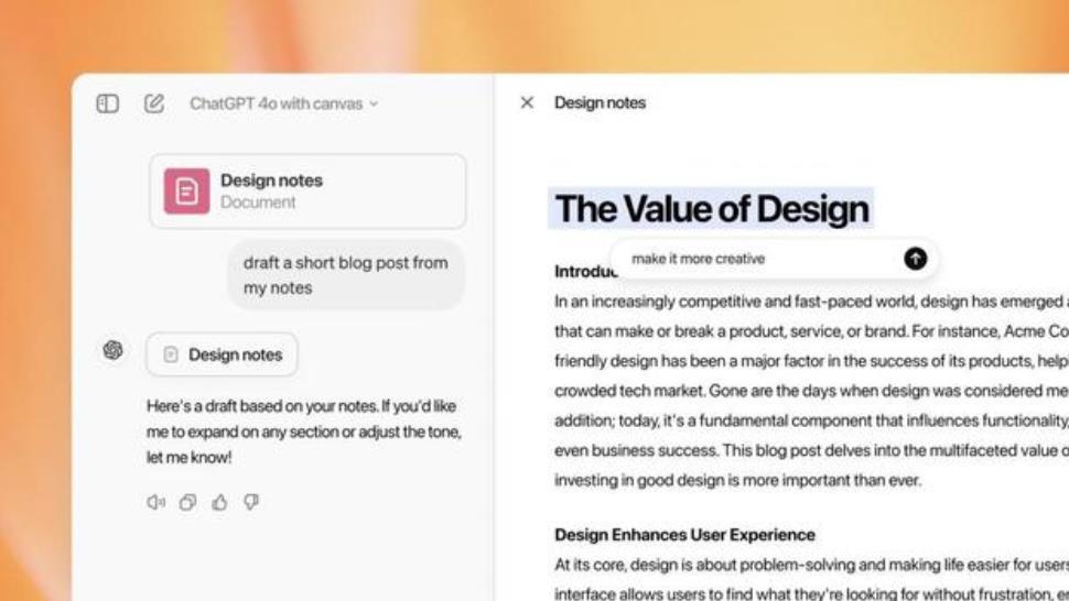 开放 Canvas 功能,重点提升用户写作和编码项目的效率。