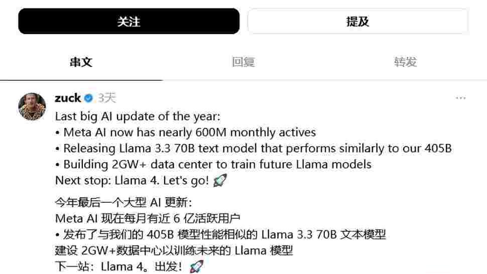 扎克伯格: Meta AI全球月活跃用户逼近6亿
