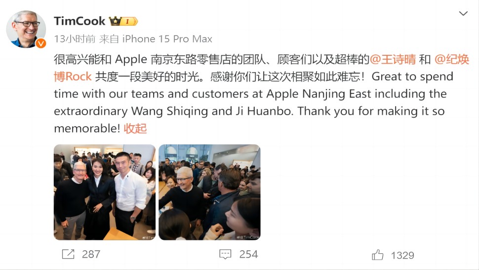 苹果 库克现身Apple Store上海静安店 在中国首谈生成式AI