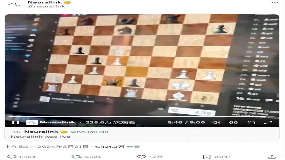 Neuralink 脑机接口实验新进展 患者能用意念下棋