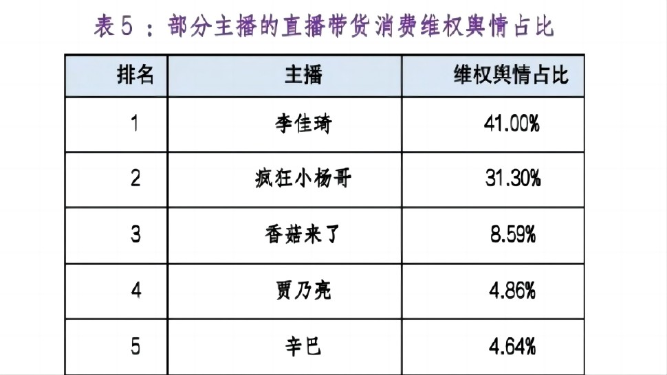 直播消费维权:李佳琦舆情占比41% 小杨哥31.3% 罗永浩为2.21%