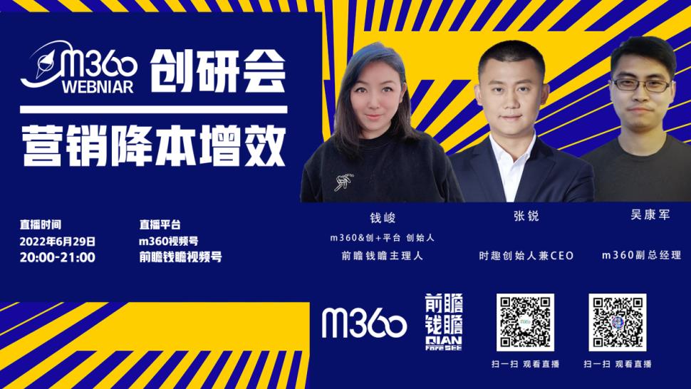 m360邀请到营销产业服务平台时趣的创始人兼CEO 张锐,聚焦“营销降本增效”主题,探讨当前环境下品牌降本增效的平台化新思路与新对策,并深度解读元宇宙、新消费等热点话题,为营销人带来思想启发与行动指引。