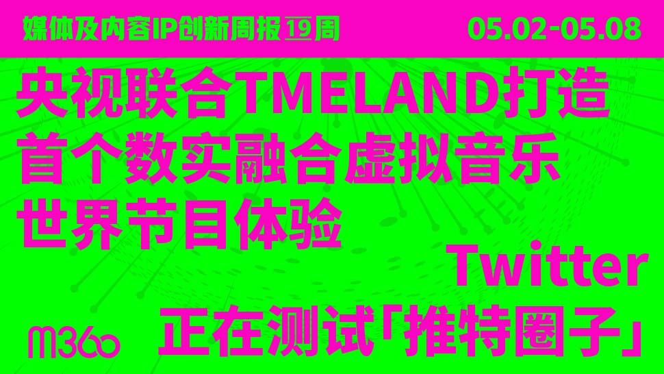 央视联合TMELAND打造首个数实融合虚拟音乐世界节目体验,Twitter 正在测试「推特圈子」|m360媒体及内容IP创新周报