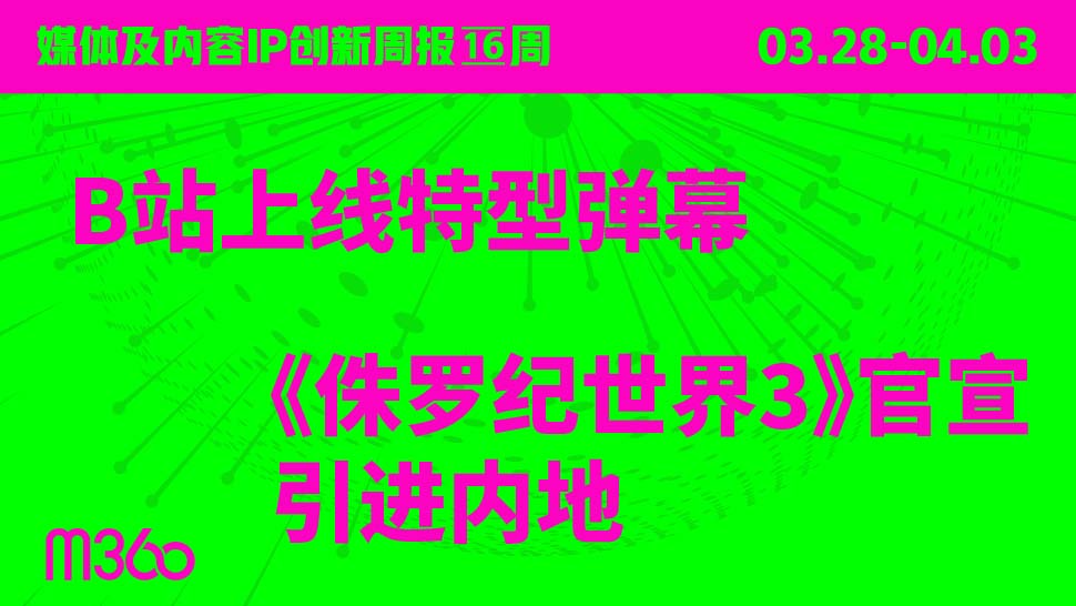 B站上线特型弹幕,《侏罗纪世界3》官宣引进内地 | 媒体及内容周报