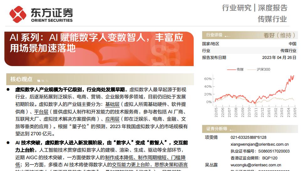AI 系列:AI 赋能数字人变数智人,丰富应 用场景加速落地