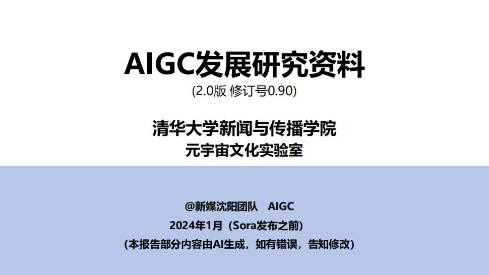 聚焦AIGC产业发展现状及趋势,分技术篇、产业篇、评测篇、 职业篇、风险篇、哲理篇、未来篇,是产业发展的概观性报告, 也初步回应了突出的风险隐忧,旨在洞察行业的基础上,对AIGC发展趋势进行科学预测与展望,为社会各界应对AIGC领域的挑战提供了理论指导与实践建议。