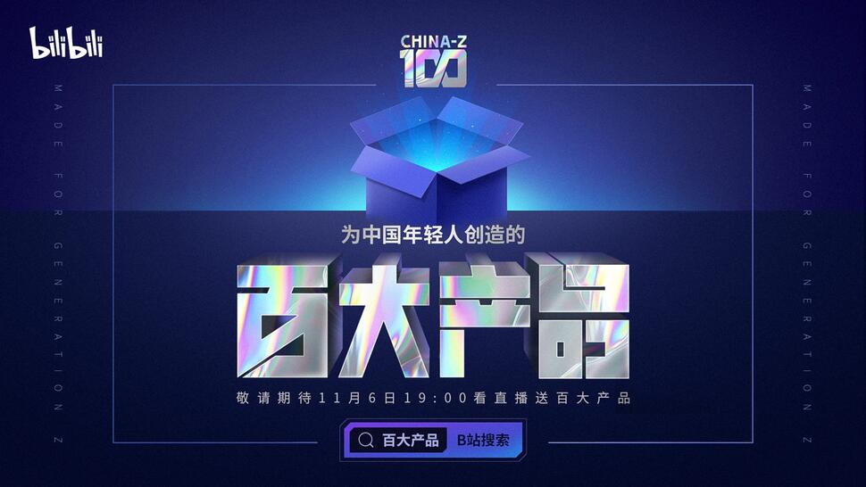 10月28日,哔哩哔哩宣布推出为中国年轻人创造的百大产品榜单——“China-Z 100”,旨在选出为中国年轻人带来生活品质提升和关怀的中国产品。11月6日,B站将举办首届国货颁奖礼,为年度十大产品颁奖。