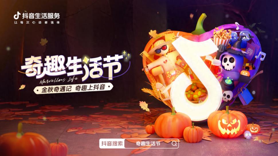 抖音生活服务综合行业推出的「奇趣生活节」,这个横跨金秋和万圣的节点活动,吸引了I人E人们的广泛参与,线上线下一站式过节。超过6万的生活服务商家,与年轻人们玩在一起。