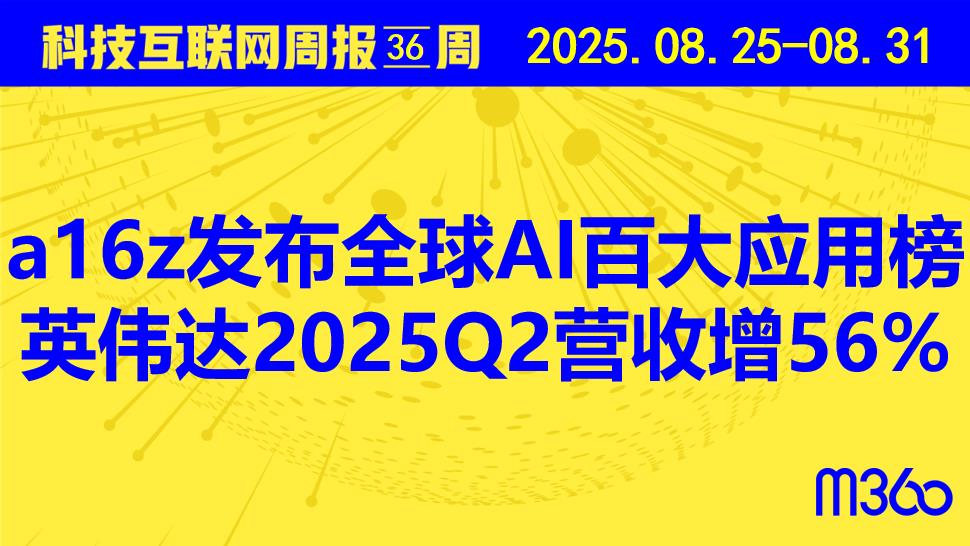 a16z发布全球AI百大应用榜 英伟达2025Q2营收增56%
